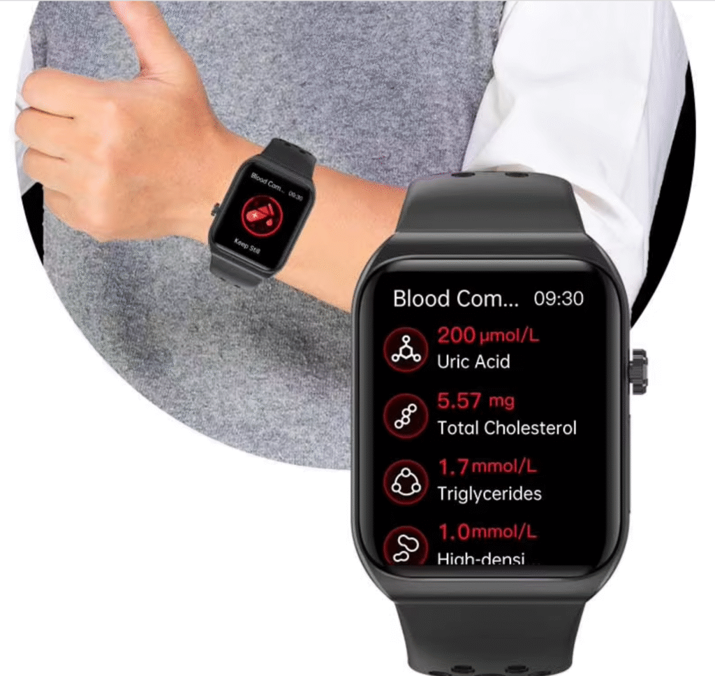 📊 Real-Time Monitoring, Real Peace of Mind With just a glance at your wrist, you can see how your blood pressure changes throughout the day — during work, rest, or exercise — giving you actionable insights into your health.