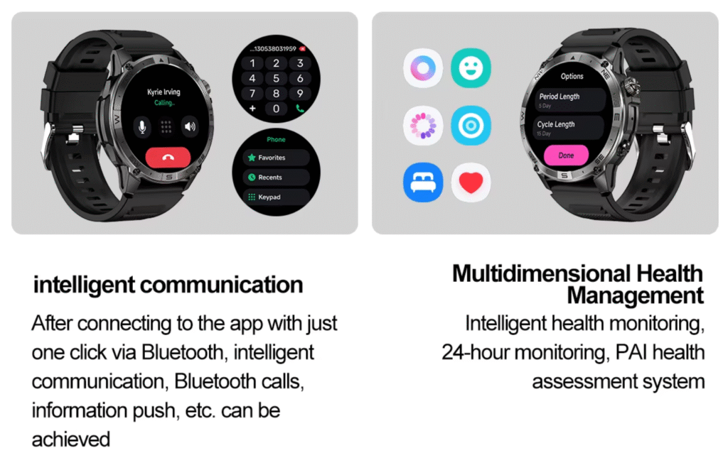 Imagine having a personal coach on your wrist: step counters that keep you moving, heart rate monitoring that keeps your workouts safe and effective, and calorie tracking that keeps you on target. Whether you’re running, cycling, or simply walking through your day, the watch records it all with precision.